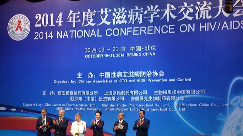 2014年10月20日,本年度規(guī)格最高、影響力最大的艾滋病學(xué)術(shù)交流大會在北京建國飯店舉行開幕儀式。艾滋病親善大使彭麗媛女士,諾貝爾獎(jiǎng)獲得者法國佛朗索瓦絲·巴爾-西諾西教授及洛克菲勒大學(xué)艾倫·戴蒙德艾滋病研究中心主任何大一教授等國內(nèi)外艾滋病等相關(guān)領(lǐng)域的知名人士、著名專家學(xué)者應(yīng)邀出席,國內(nèi)疾控系統(tǒng)負(fù)責(zé)人、愛心企業(yè)和新聞媒體人士共一千余人參加開幕式。