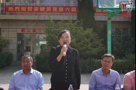 集團工會主席張華宣布貝克制藥2020年慶十一運動會開幕,縣總工會黨組書記、副主席劉靜,貝克原料藥基地總經(jīng)理張偉參加活動。