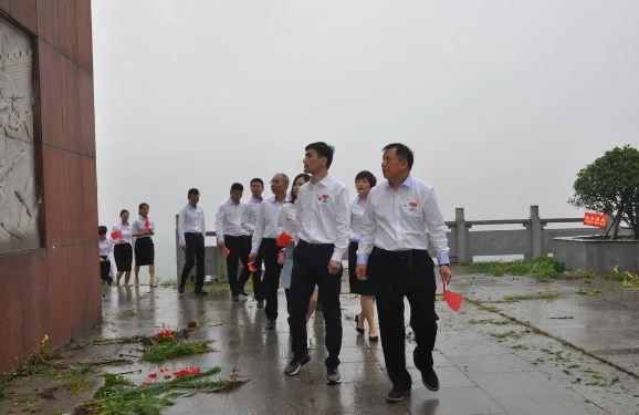 初到福泉山烈士陵園,清晨的細(xì)雨淅瀝飄零,黨員們懷著莊嚴(yán)肅穆的心情手握小黨旗冒雨登上三百六十五級臺階,肅立在革命烈士紀(jì)念碑前,全體黨員揮舞著小黨旗,齊聲高呼“慶建黨百年、緬懷先烈,不忘初心、砥礪前行”的活動口號。