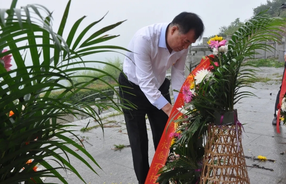 王志邦董事長、許俊副行長上前敬獻(xiàn)花籃、整理挽聯(lián)以表對革命烈士的哀思。