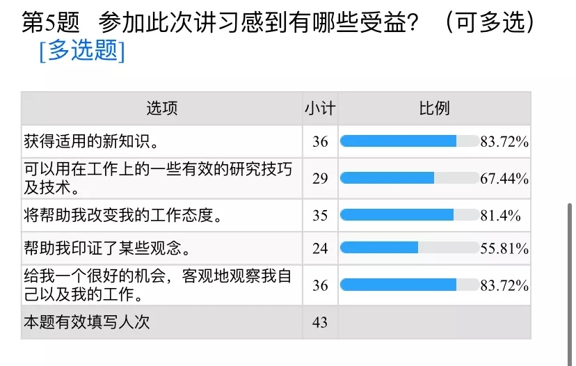 在培訓(xùn)反饋中,新員工對培訓(xùn)的課程設(shè)置、教學(xué)形式、課時安排、培訓(xùn)師授課質(zhì)量及培訓(xùn)組織管理給予了高度評價。通過此次培訓(xùn),新員工紛紛表示受益匪淺,在本次培訓(xùn)中學(xué)到了知識、掌握了技巧、拓寬了視野、提升了能力。