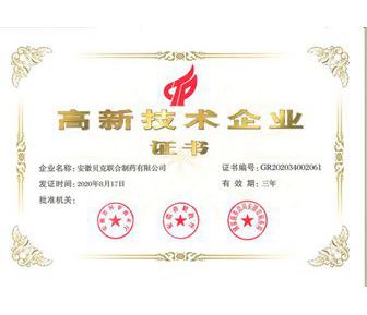 安徽省高新技術(shù)企業(yè)(聯(lián)合制藥)
